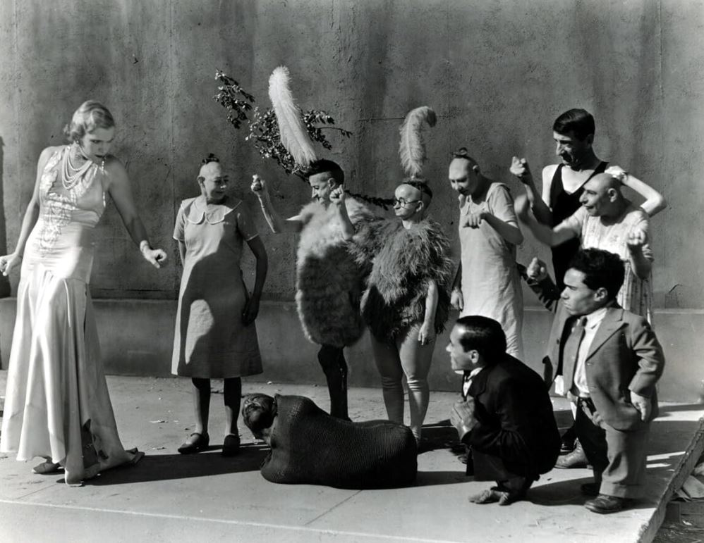 Although Randian worked at Coney Island for 45 years, he also travelled across the US as part of a show which would stop at cities across the country. However, it was in 1932 that his legendary status would be secured when he was cast by Tod Browning to appear in his magnificent film, ‘Freaks’, alongside many other popular sideshow attractions. Although his screen time is minimal, he is given the opportunity to perform his cigarette-rolling trick, expertly constructing it and then with astonishing dexterity, flicking open a matchbox, selecting a match with his tongue and, having laid the box at a convenient angle, striking it against the rough edge to light it – all whilst holding the cigarette in the other side of his mouth. It is very difficult to discern what he’s saying in the film, but it is in fact a taunt to onlookers: